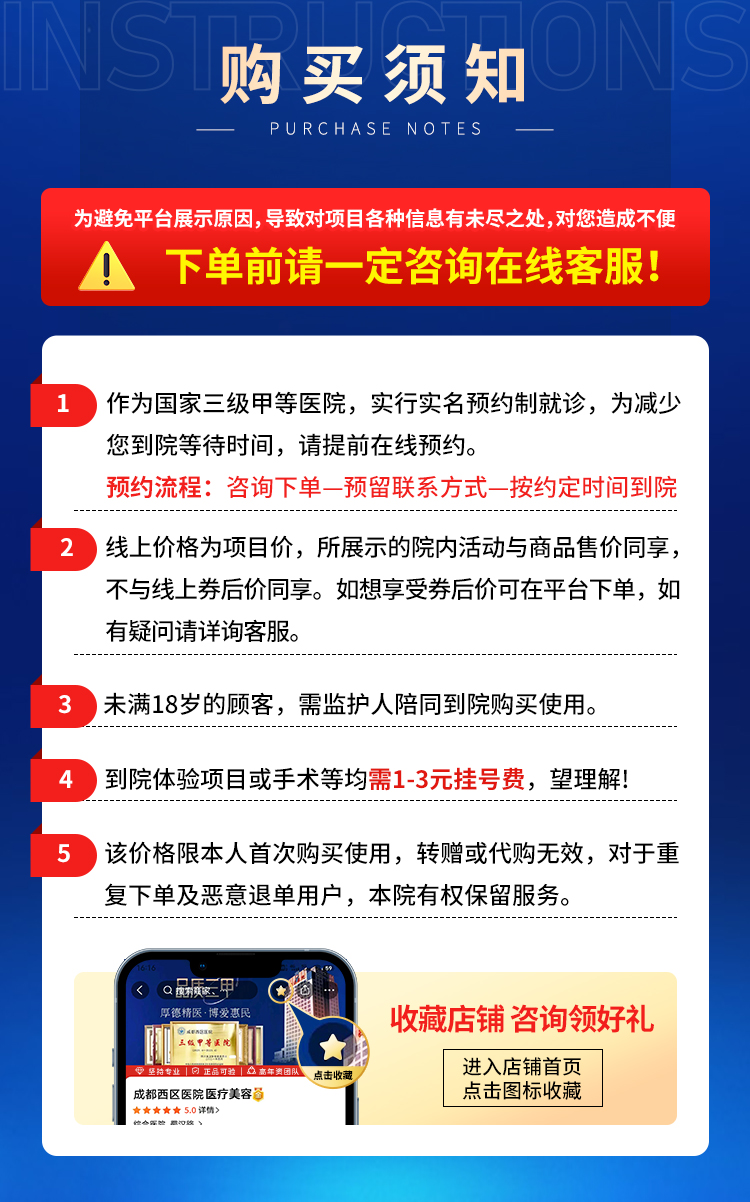 备注:1、该项目为平台活动价,不与院内其他活动同享,仅限首次到院顾客购买,每人限购买一次,多拍或换平台购买无效。