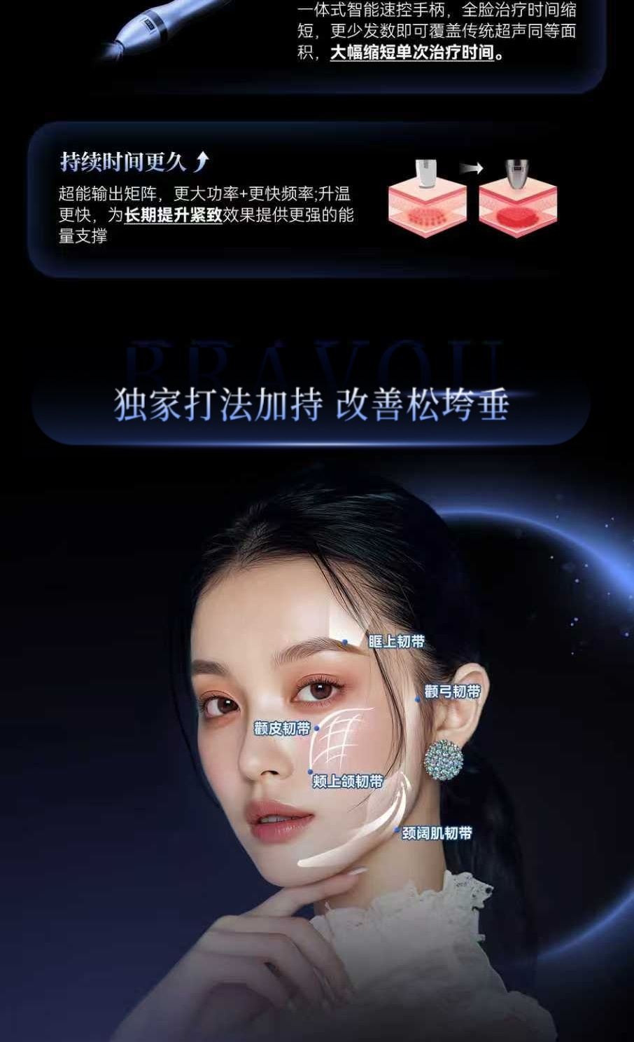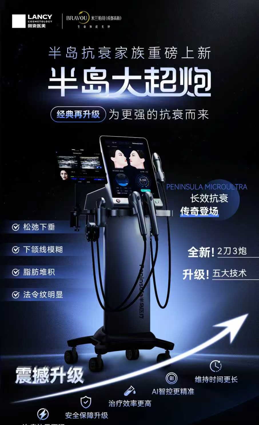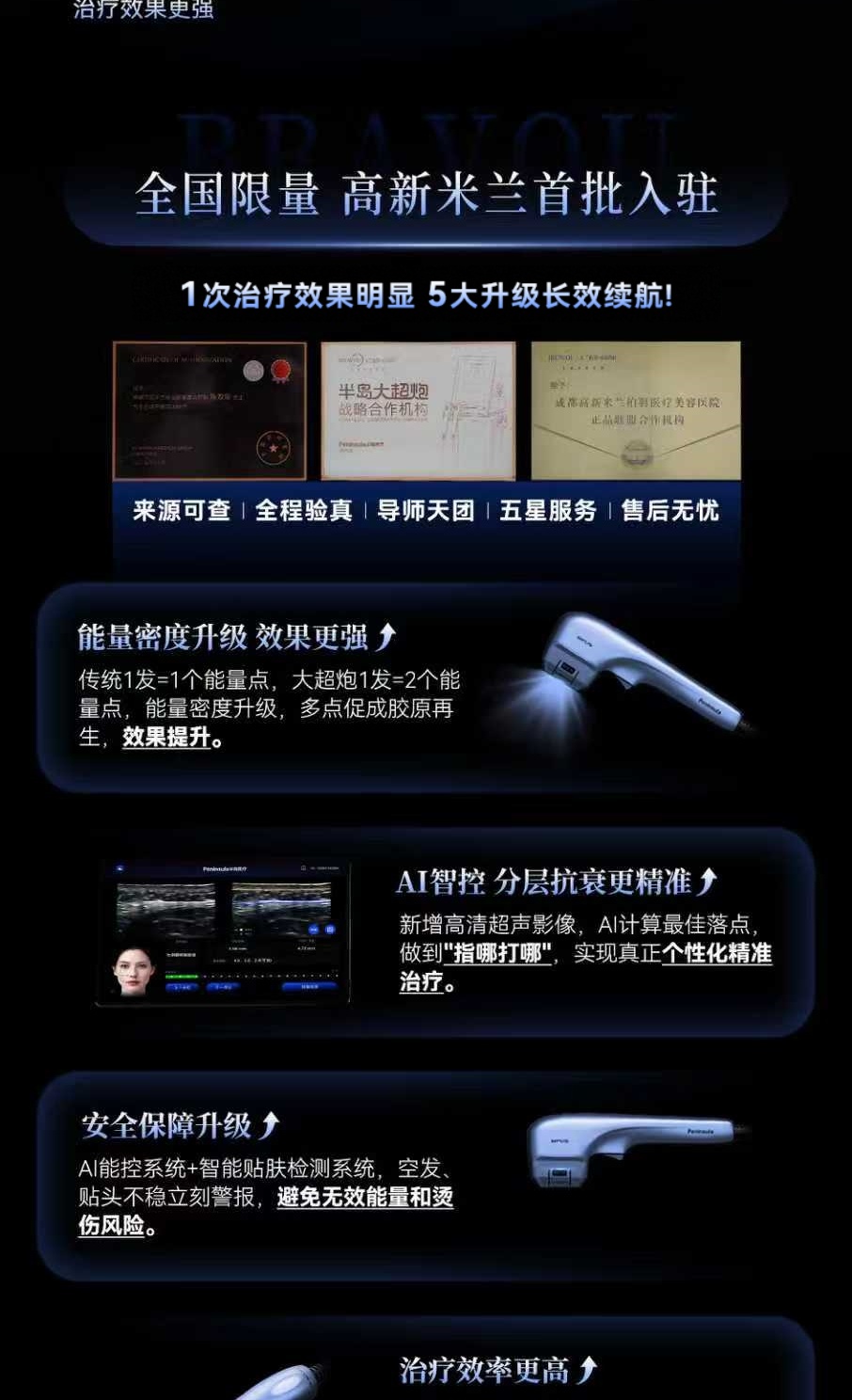 国内首张超声 “械三证”、能量翻倍 、AI可视化能量把控、舒适感更强、效果可视化、治疗时间更短、维持时间更长;